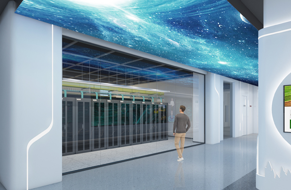 中央機(jī)房,是數(shù)據(jù)處理的硬件中心,光電玻璃的運(yùn)用,使參觀者完成從了解“內(nèi)在”到觀看“外在”的切換。 | |